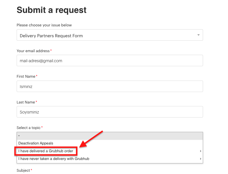 Grubhub, bölge değiştirme taleplerini yazılı olarak da alır. Bunun için aşağıdaki adımları takip edebilirsiniz: