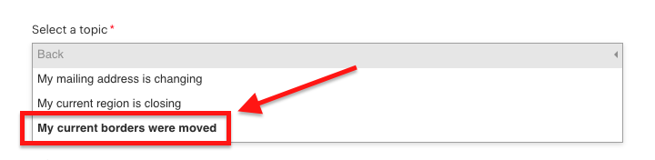- Ardından “Changing my delivery region”