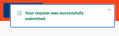 Başarıyla gönderdiğinizde “Your request was successfully submitted.” mesajı görünür. Grubhub, talebinize e-posta yoluyla geri dönüş yapacaktır.