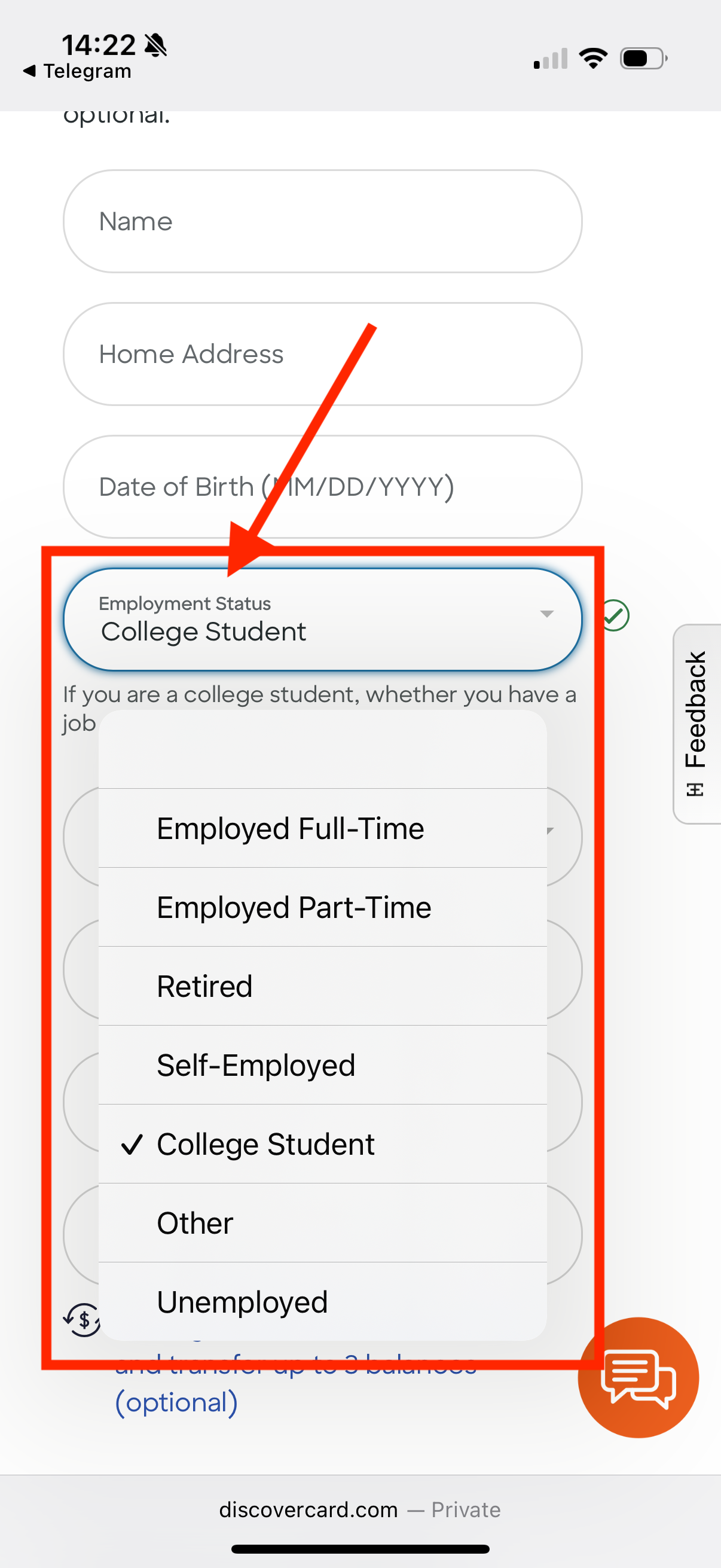 - Örneğin delivery veya rideshare işi yapıyorsanız “Self-Employed” seçeneğini işaretleyebilirsiniz.