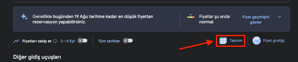Eğer tarihleriniz esnekse, Takvim seçeneğine tıklayın. Karşınıza bir fiyat matrisi çıkar.
